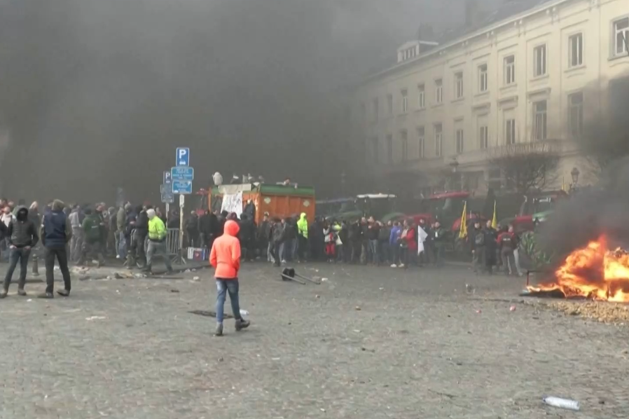 欧洲各地上万农民聚集布鲁塞尔举行抗议