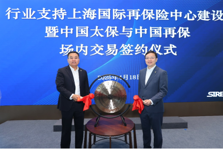 4月18日金融一线消息,“行业支持上海国际再保险中心建设暨中国再保与中国太保场内交易签约仪式”今日在上海国际再保险登记交易中心成功举办。来自政府机构、中外保险机构及金融机构的100余名嘉宾参加会议。上海市国资委主任贺青、中国再保总裁庄乾志、中国太保董事长傅帆出席会议并致辞。