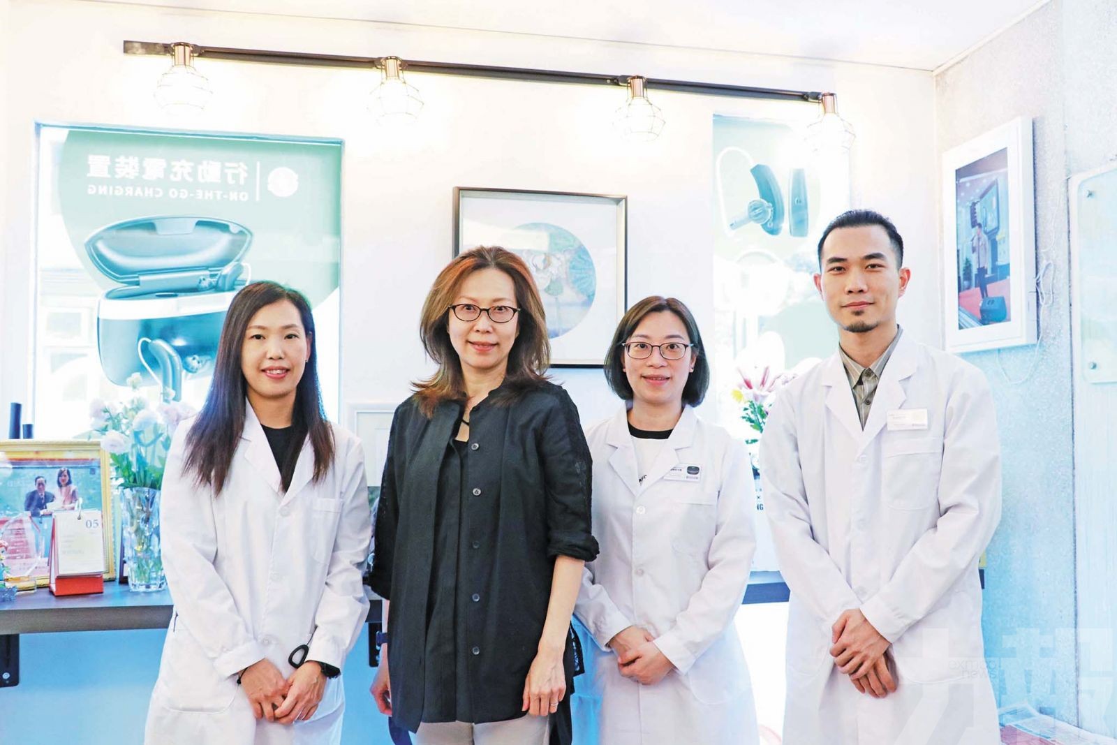 據國際醫學期刊《刺胳針》研究指,輕度聽力損失會使失智症風險增加一倍,中度聽力損失增加三倍,聽力嚴重受損人士患失智症的可能性要高出一般人五倍。因為影響失智成因中聽力損失佔其中8.2%,排名第一,故關注聽力健康刻不容緩。「唯聽澳門」首席聽力學家梁紫慧博士指出,目前全球聽力損失趨向年輕化,因為聽力受損的風險無處不在,而聽力一旦受損往往不可逆,建議可用「60/60原則」方法保護聽力。左至右:唯聽澳門高級聽力師余琼棉、資深聽力學家梁紫慧博士、高級聽力師高素珊、聽力師區煒麟。