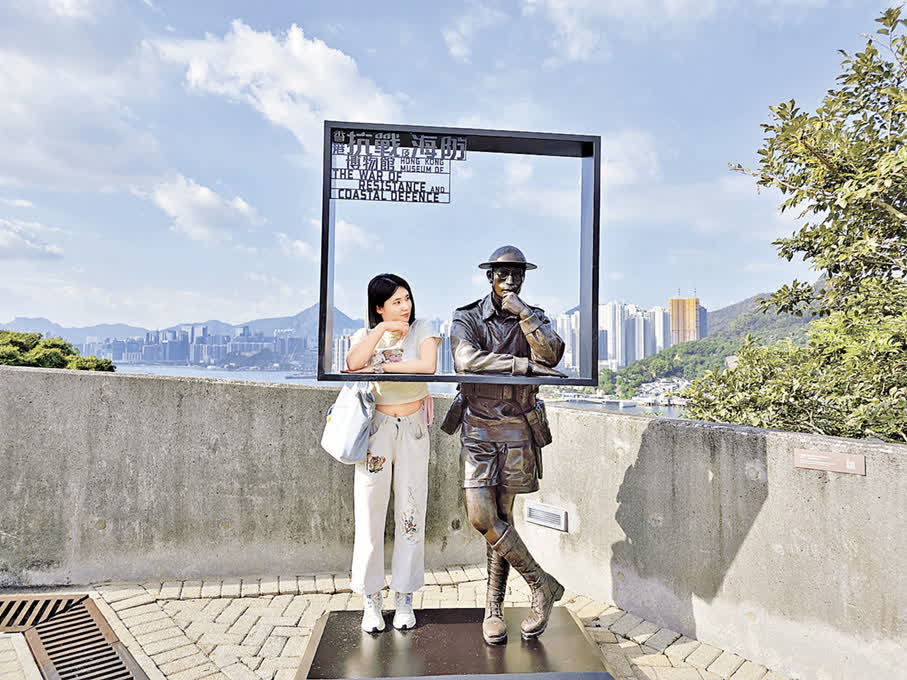食飽飽散步消脂,來到筲箕灣東喜道175號的香港抗戰及海防博物館。這裏是由逾百年歷史的舊鯉魚門炮台改建而成,坐落在海拔64米的岬角上,由接待區、8樓堡壘及史蹟徑三個主要部分組成。屹立山嶺上的鯉魚門堡壘,沿途軍事遺蹟有跡可循,既可感受鯉魚門海峽的重要戰略要塞,也可欣賞人工設施與自然景觀結合之美。由接待大樓乘電梯到8樓堡壘,路旁有許多戶外打卡點,如野戰炮、中央炮台、士兵雕塑等。來到8樓堡壘的「香港海防故事」常設展覽,11個展區將香港由古代到近現代的防務建構娓娓道來,展品多種多樣,有文物、雕塑、相片、電影,更有AI互動遊戲和海防知識問答,資料詳盡、展陳精美、體驗豐富有趣。