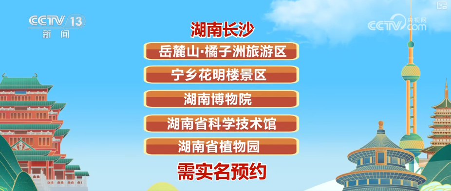 湖南文旅部门提示,长沙除岳麓山·橘子洲旅游区、宁乡花明楼景区、湖南博物院、湖南省科学技术馆、湖南省植物园需要实名预约之外,其余77家A级旅游景区无需实名预约。