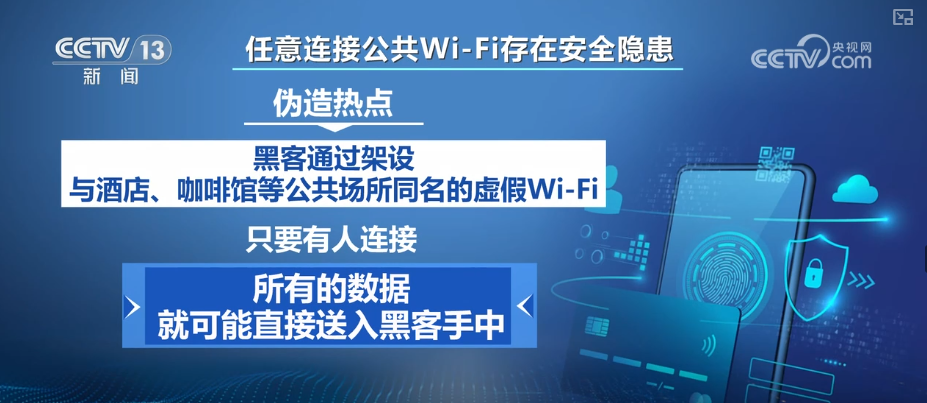 伪造热点:黑客通过架设与酒店、咖啡馆等公共场所同名的虚假Wi-Fi,只要有人连接,所有的数据就可能直接送入黑客手中。