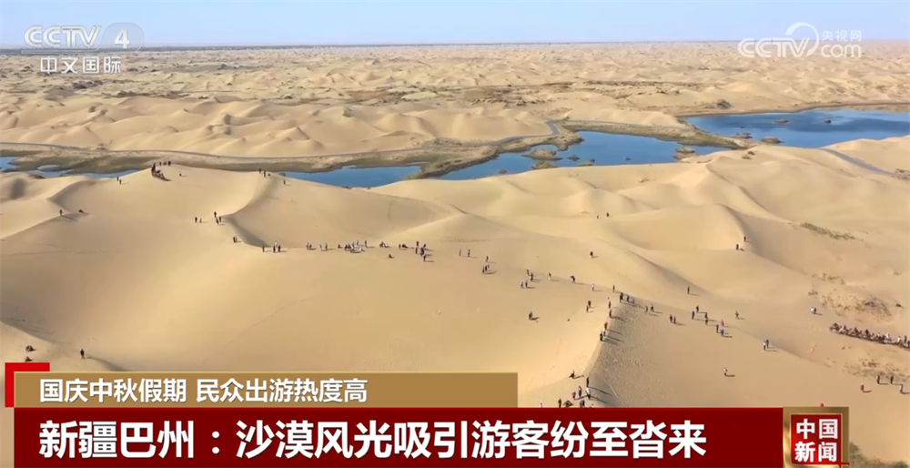 在新疆巴州尉犁县罗布人村寨景区,来自全国多地的游客在沙漠、胡杨以及湖泊间畅游,沉浸式体验罗布人村寨的自然生态与历史人文魅力。