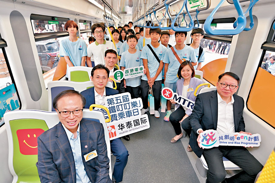 由華泰國際、港鐵及香港電車共同主辦的「輕鐵叮叮樂」,以「益心華泰·共創明『Teen』」為主題。陳國基表示,這個主題正好呼應了政府推動青年發展的政策方向。共創明「Teen」計劃自推出以來,已吸引超過1萬名中學生參與。透過企業參訪、職涯探索、個人發展工作坊等活動,有效幫助青少年建立自信、擴闊視野、規劃未來。