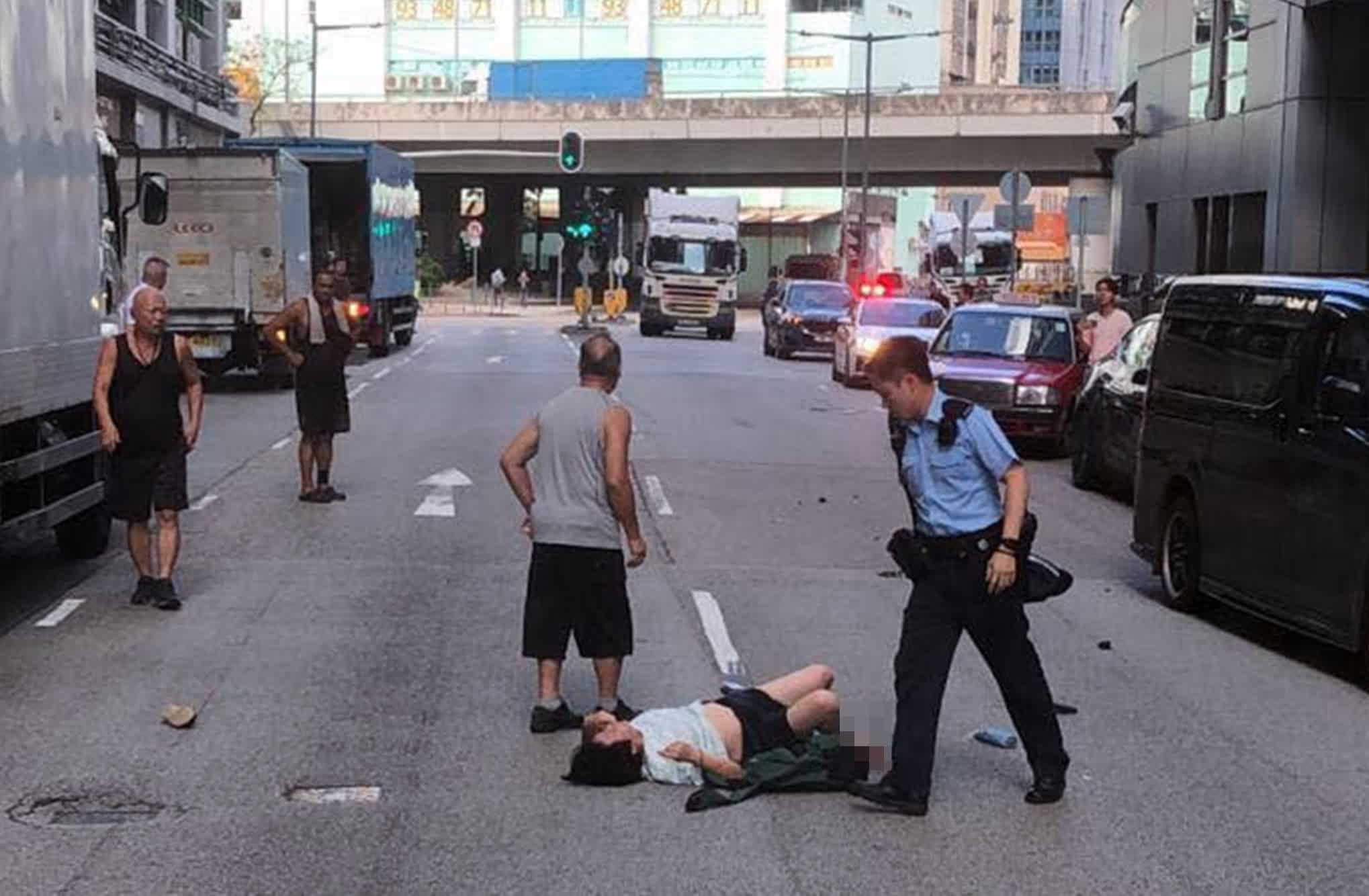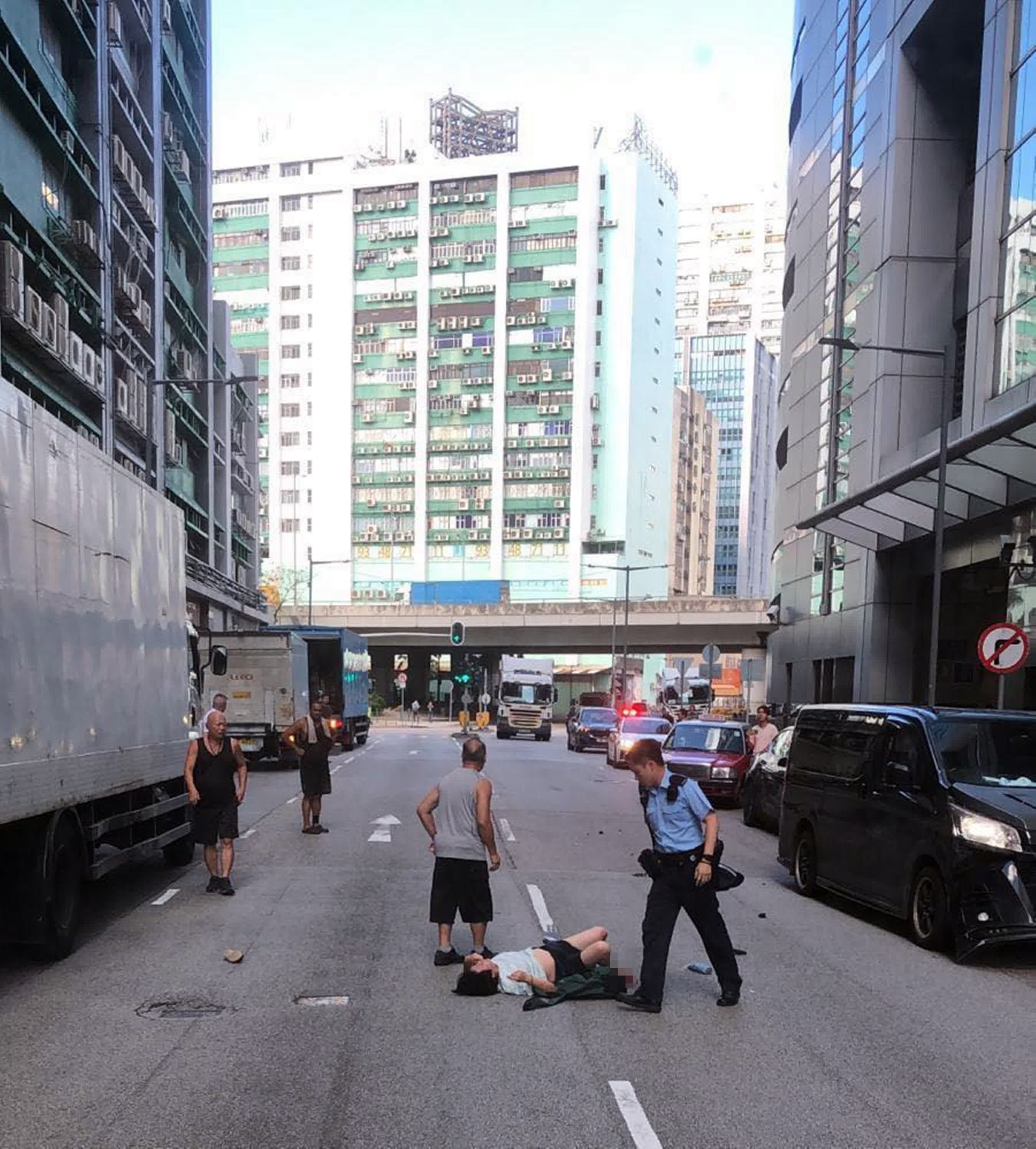 香港文匯報訊(記者 蕭景源)今日(14日)下午約3時,一名女途人在葵涌貨櫃碼頭路88號永得利廣場對開遭一輛客貨車撞倒路中。網上圖片可見,倒地女途人左腳腕疑似嚴重受傷骨折變形,鞋履及雜物散落一地,警員及市民在場協助。