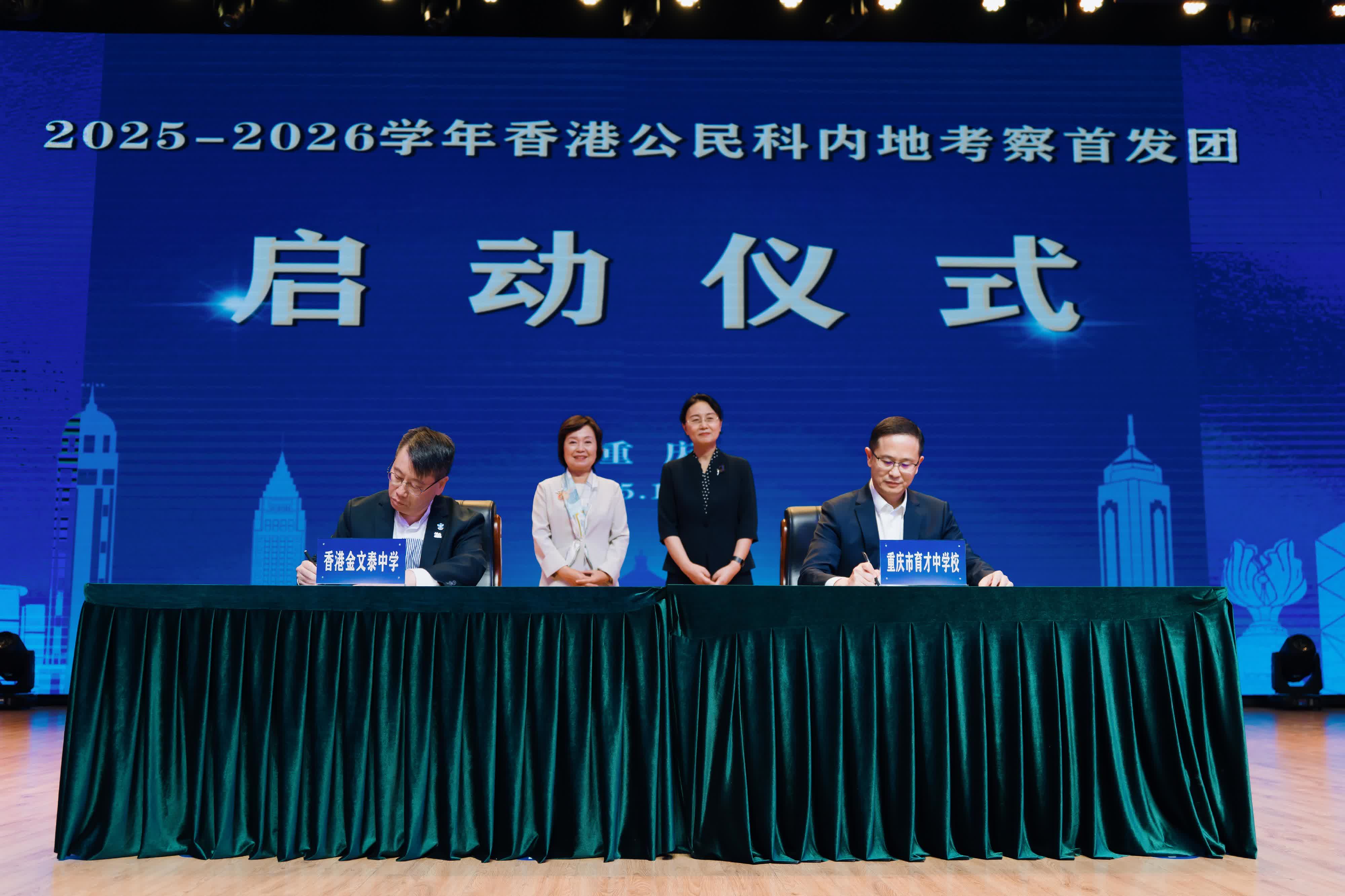 同時,蔡若蓮與重慶市教育委員會代表簽署渝港教育合作備忘錄,並見證金文泰中學與重慶市育才中學締結成姊妹學校。