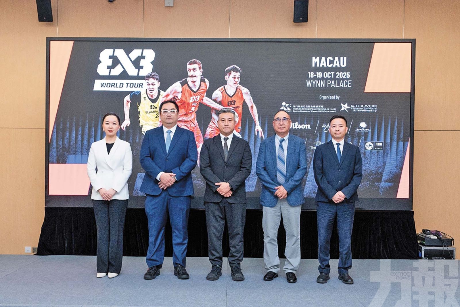 由國際籃球聯會(FIBA)授權,澳門特別行政區政府體育局及澳門星娛樂製作有限公司聯合主辦,中國澳門籃球總會及齊睿體育活動策劃有限公司協辦的「2025國際籃聯三人籃球澳門大師賽」將於本年10月18至19日在永利皇宮南門戶外草坪舉行。「 2025國際籃聯三人籃球澳門大師賽 」將於本年10月18至19日舉行。圖為往屆比賽現場。 (新聞局資料圖片)賽事主辦單位昨 (14) 日舉行新聞發佈會公佈賽事詳情。(體育局圖片)
