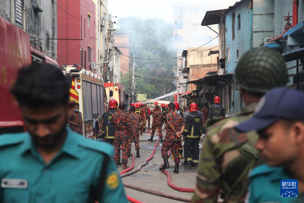10月14日,在孟加拉国首都达卡,消防人员在火灾现场救援。