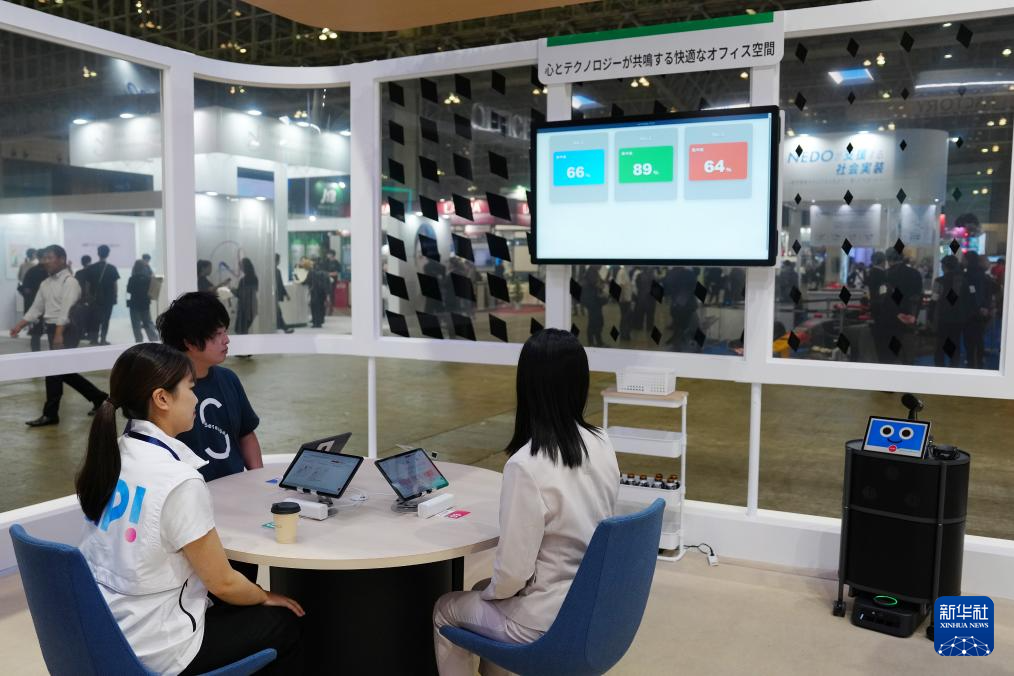 这是10月14日在日本千叶县举行的2025年日本高新技术博览会上拍摄的三菱公司的智能办公空间。