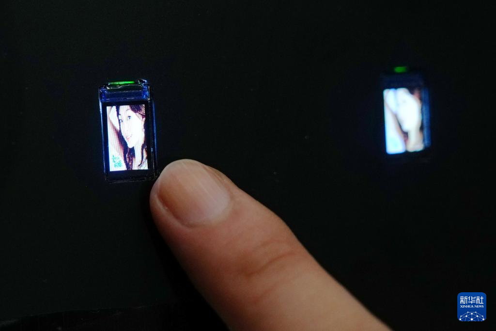 这是10月14日在日本千叶县举行的2025年日本高新技术博览会上拍摄的中国贵德集团的0.49英寸显示屏。