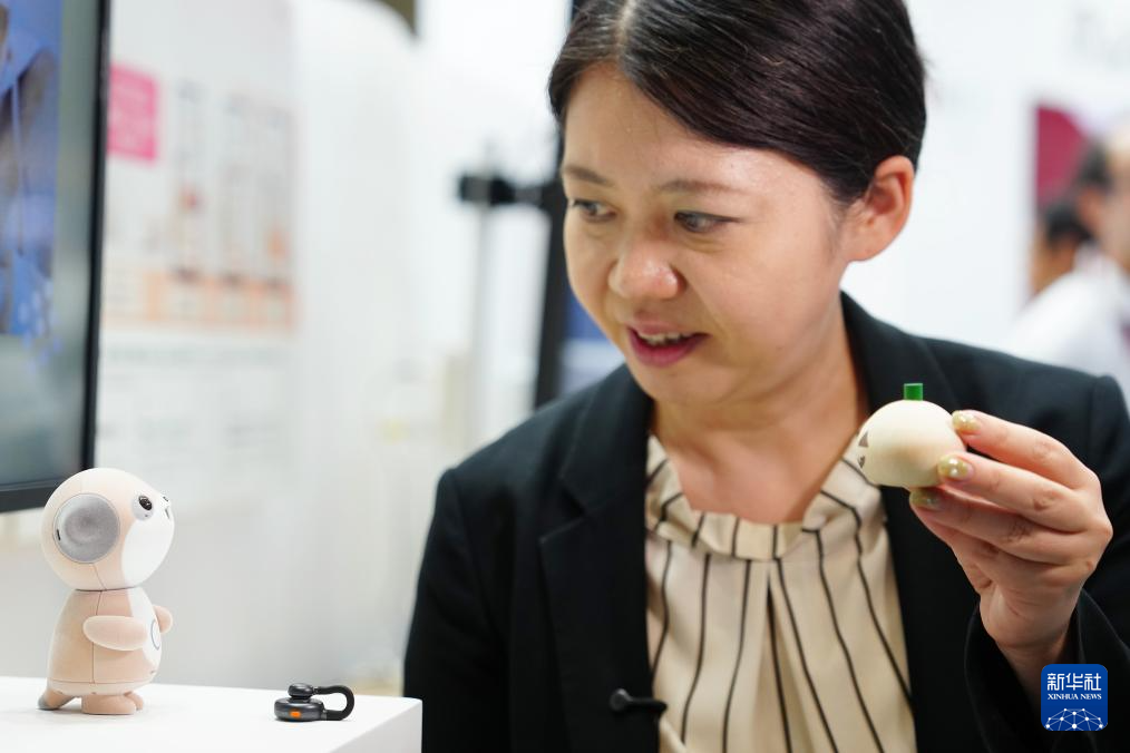 这是10月14日在日本千叶县举行的2025年日本高新技术博览会上拍摄的夏普公司的智能电子宠物。