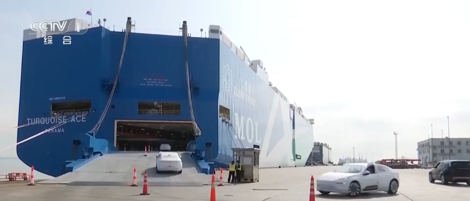 在全球最大的汽车滚装进出口码头——上海外高桥港区海通国际汽车码头,每天约有2—3艘国际货轮从这里出发,眼前这两艘滚装船将搭载4083辆中国产汽车驶往海外。
