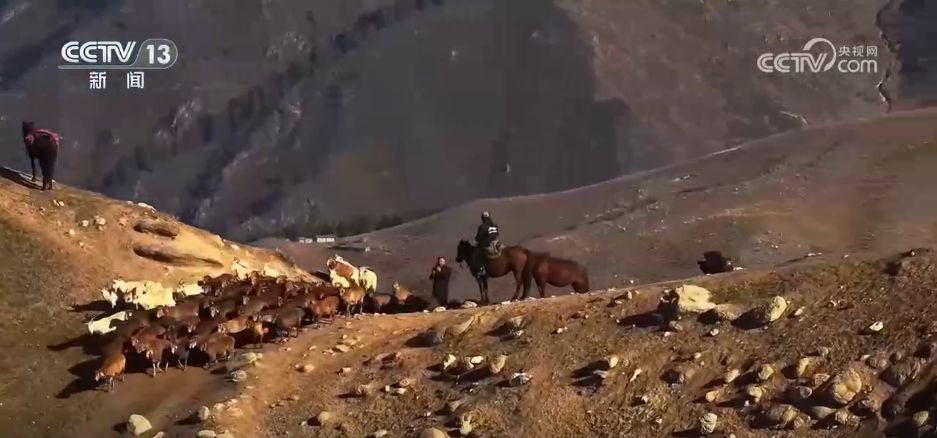 央视网消息:眼下天气逐渐转凉,新疆伊犁州特克斯县11.4万头牲畜陆续开启冬季转场,向200公里外的包扎得尔牧场迁徙。