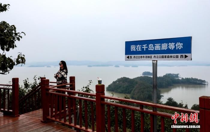 游客在丹江口千岛画廊拍照留念。张畅 摄