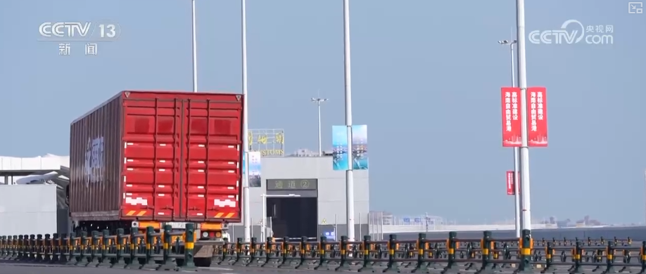 这里是海口新海港和南港“二线口岸”货运集中查验场,第一批装载着享受加工增值免关税政策货物的车辆顺序通过海关监管通道,准备进入内地。