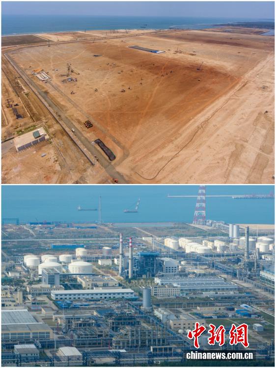2025年12月18日,海南自由贸易港正式启动全岛封关。近年来,海南自贸港建设在利好政策带动下不断刷新“自贸港速度”,一个个重大项目、重点园区拔地而起,直观呈现海南自贸港的蓬勃生机。这里正成为中国对外开放的新前沿、互利合作的新热土和推动经济全球化的新引擎。上资料图为2020年5月27日位于洋浦经济开发区的海南炼化百万吨乙烯项目建设地块,下资料图为2025年12月12日已经投产的海南炼化百万吨乙烯项目。(拼版图,无人机照片)