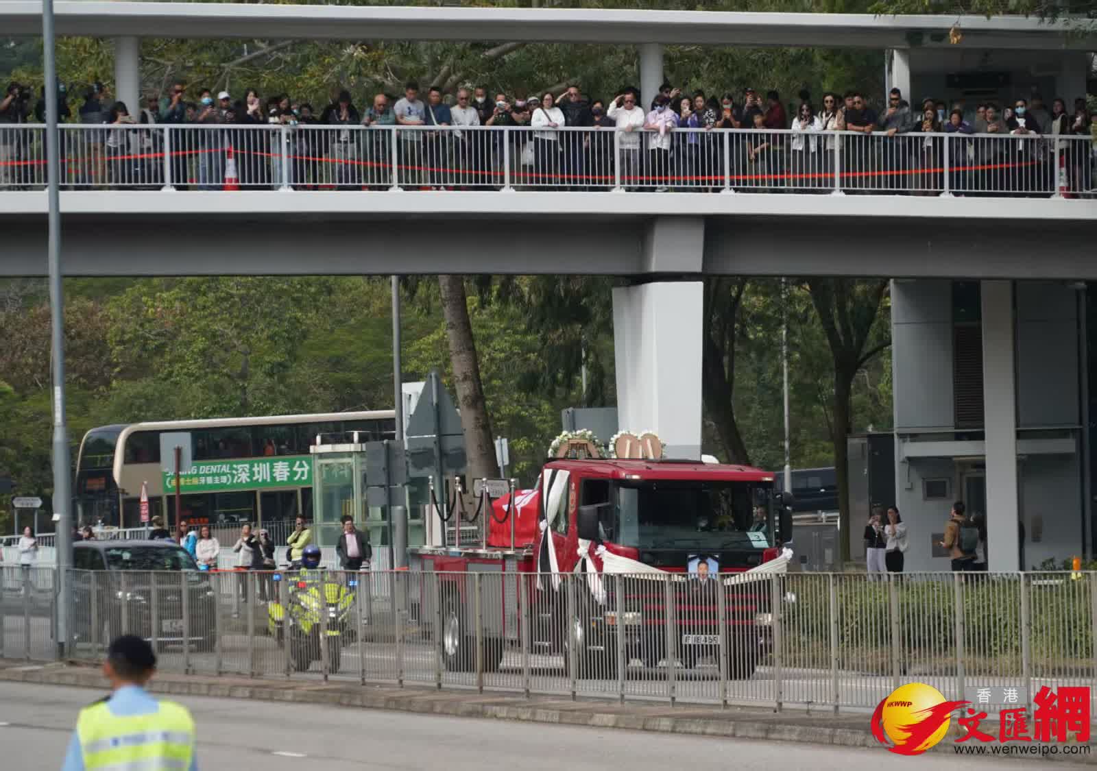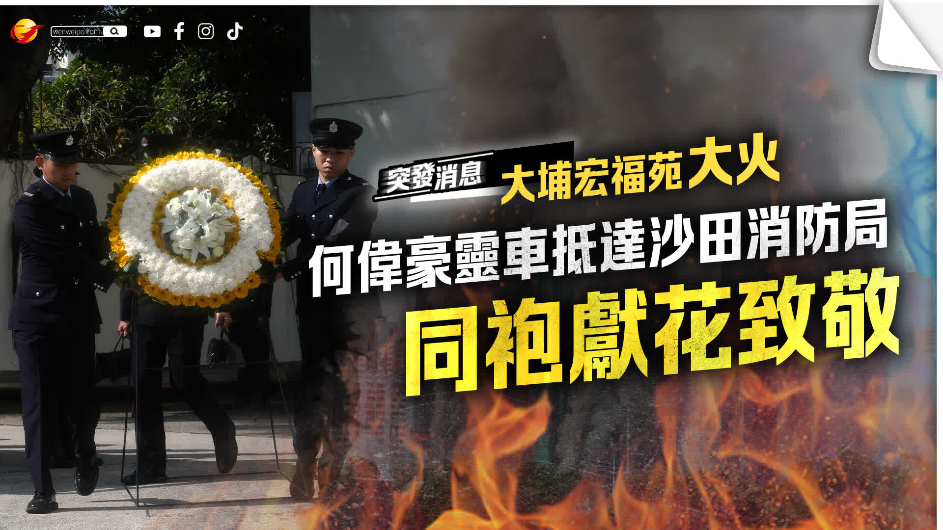大埔宏福苑大火︱何偉豪靈車抵達沙田消防局 同袍獻花致敬