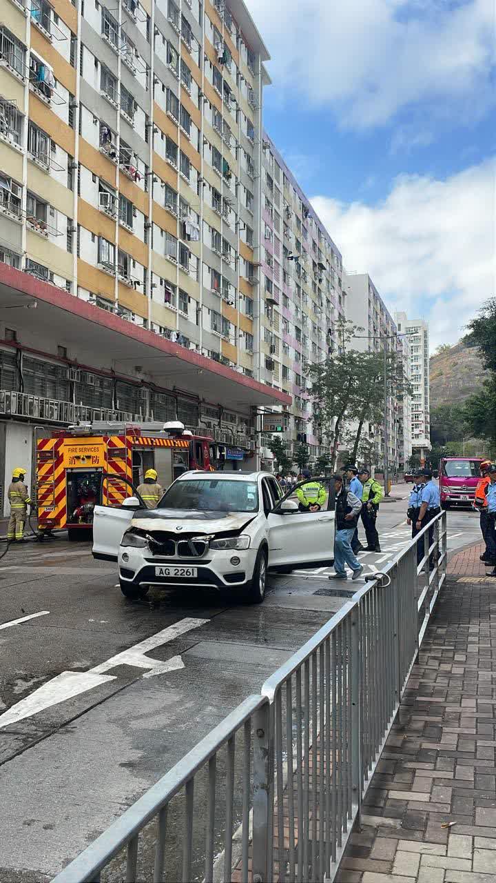 石硤尾私家車起火引擎蓋燒黑 車道來回方向一度封閉