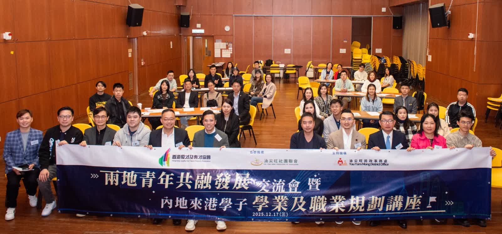 12月17日,為內地來港學子更了解香港學業及職業的規劃,油尖旺社團聯會與香港優才及專才協會聯合舉辦「兩地青年共融發展交流暨 內地來港學子學業及職業規劃講座」,活動亦得到油尖旺民政事務處的大力支持,吸引逾三十多位內地來港學生踴躍參與。