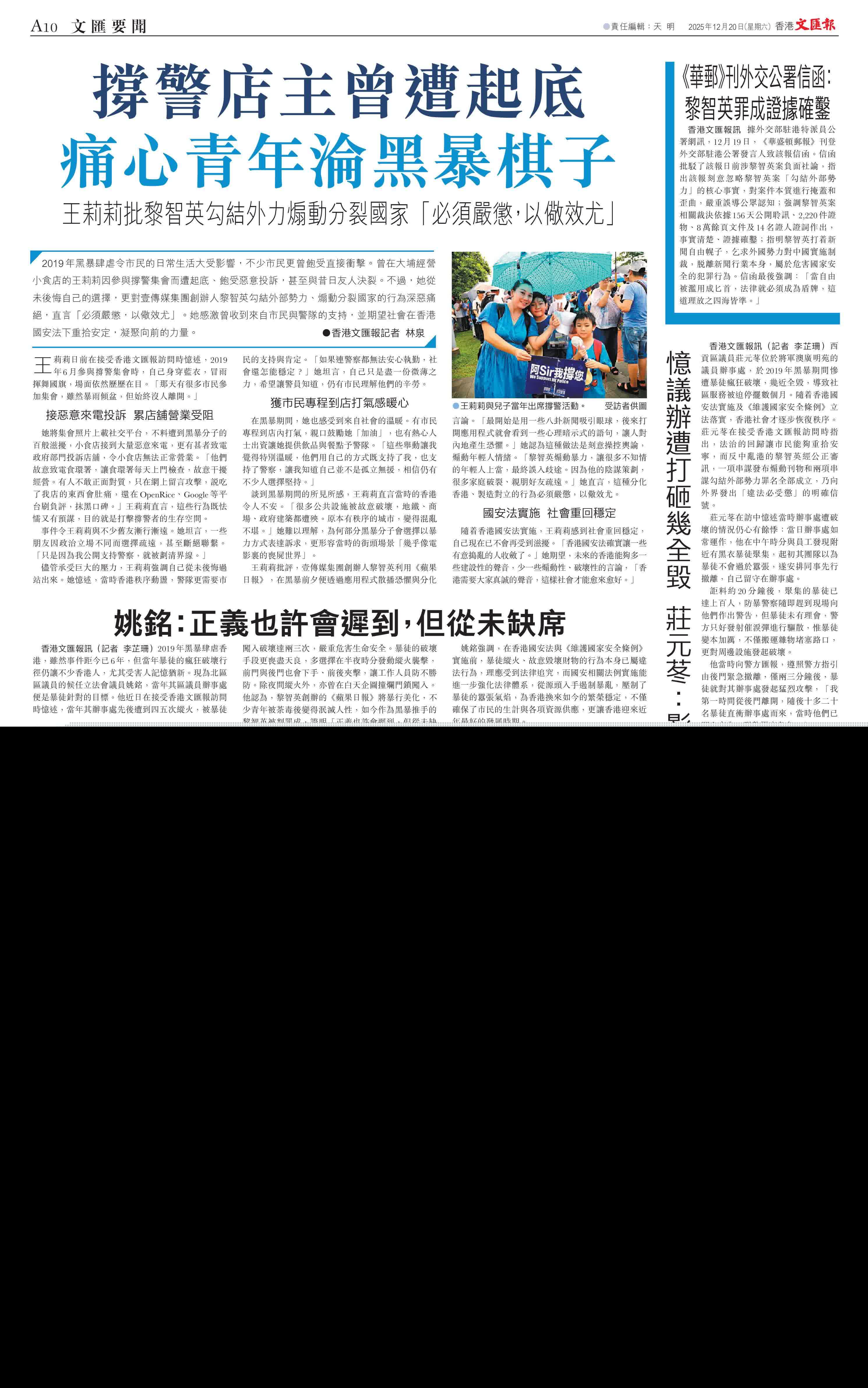 (香港文匯報記者 林泉)2019年黑暴肆虐令市民的日常生活大受影響,不少市民更曾飽受直接衝擊。曾在大埔經營小食店的王莉莉因參與撐警集會而遭起底、飽受惡意投訴,甚至與昔日友人決裂。不過,她從未後悔自己的選擇,更對壹傳媒集團創辦人黎智英勾結外部勢力、煽動分裂國家的行為深惡痛絕,直言「必須嚴懲,以儆效尤」。她感激曾收到來自市民與警隊的支持,並期望社會在香港國安法下重拾安定,凝聚向前的力量。
