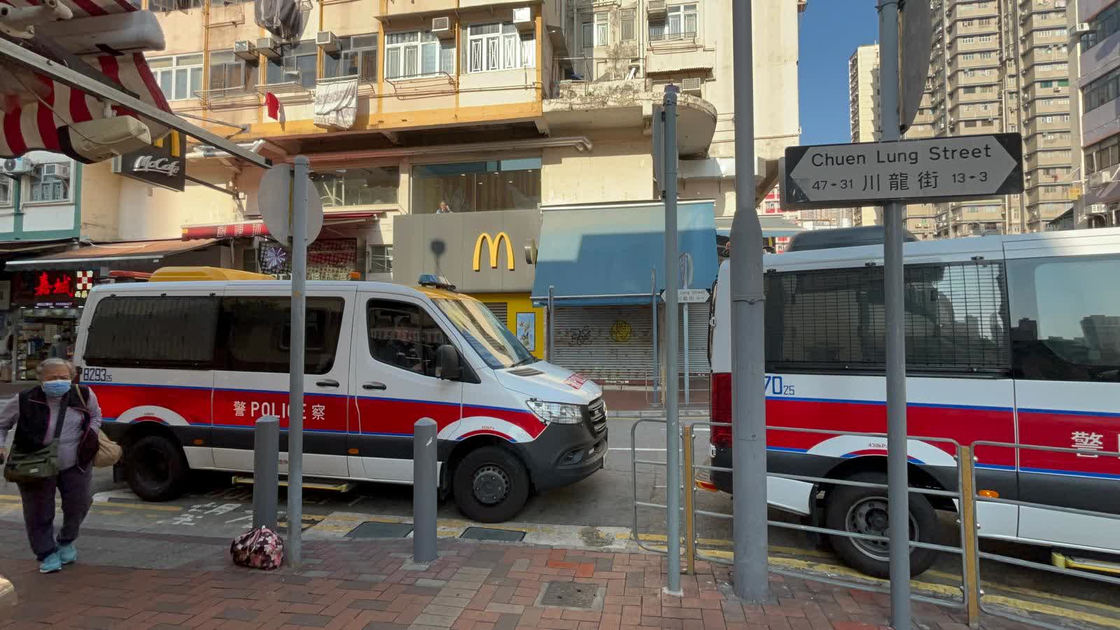今早(17日)8時48分,荃灣大河道麥當勞樓梯間有一名男子持刀揮舞,引發途人不安及報警。警員接報後趕抵現場,在麥當勞旁邊的台階上發現一名非華裔可疑男子,經截查在其背囊內搜出一把約30厘米長菜刀,男子涉嫌「管有攻擊性武器」罪名被捕,案件交由荃灣警區刑事調查隊第二隊跟進。現場所見,警方將男子反鎖在地,用黑色頭套將其面部蒙住,並搜查其隨身物品,有警員穿戰術背心戒備。