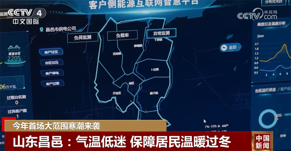 天寒地冻,为保障山东昌邑近4万户清洁取暖用户过冬,当地编制保障方案,通过“供电服务一张图”平台,实时监测供暖台区负荷变化。