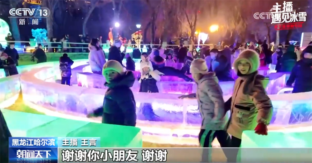 王言:今天探访我感觉兆麟公园就是哈尔滨人热爱冰雪的最好见证,我想到一个词,就是“流淌”,水变成了冰,这里的人把冰变成了艺术,变成了生活,却又像水一样流淌,一代又一代,不停地流淌。你看有一家几代人都来看冰灯的,还有一家三代做冰雕的,这里留下了哈尔滨人的童年记忆,更为他们编织了美好的冰雪梦。