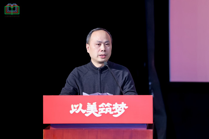 中国美术家协会插图装帧艺委会副主任、湖南美术出版社社长黄啸代表出版方感谢中国文联、中国美协为此次展览的指导策划,感谢专家指导组以及100位青年美术家们数月的辛勤指导和创作,为孩子们呈现了一场艺术的盛宴。同时他表示,儿童启蒙阶段的阅读在人的一生成长中起着不可估量的作用,承载着孩子对世界的探索和对美好的向往。它不仅仅是一本书,更是一扇窗,让孩子们可以透过它看到世界的多彩和美好。