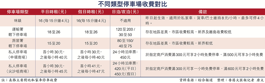 他續說,私人停車場遵循供求關係的市場規律,「停車場分公營及私人,前者收費相對固定,後者則講供求關係,例如商場需要誘因讓車主逗留消費,會提供停車優惠,有商業行為動機。」
