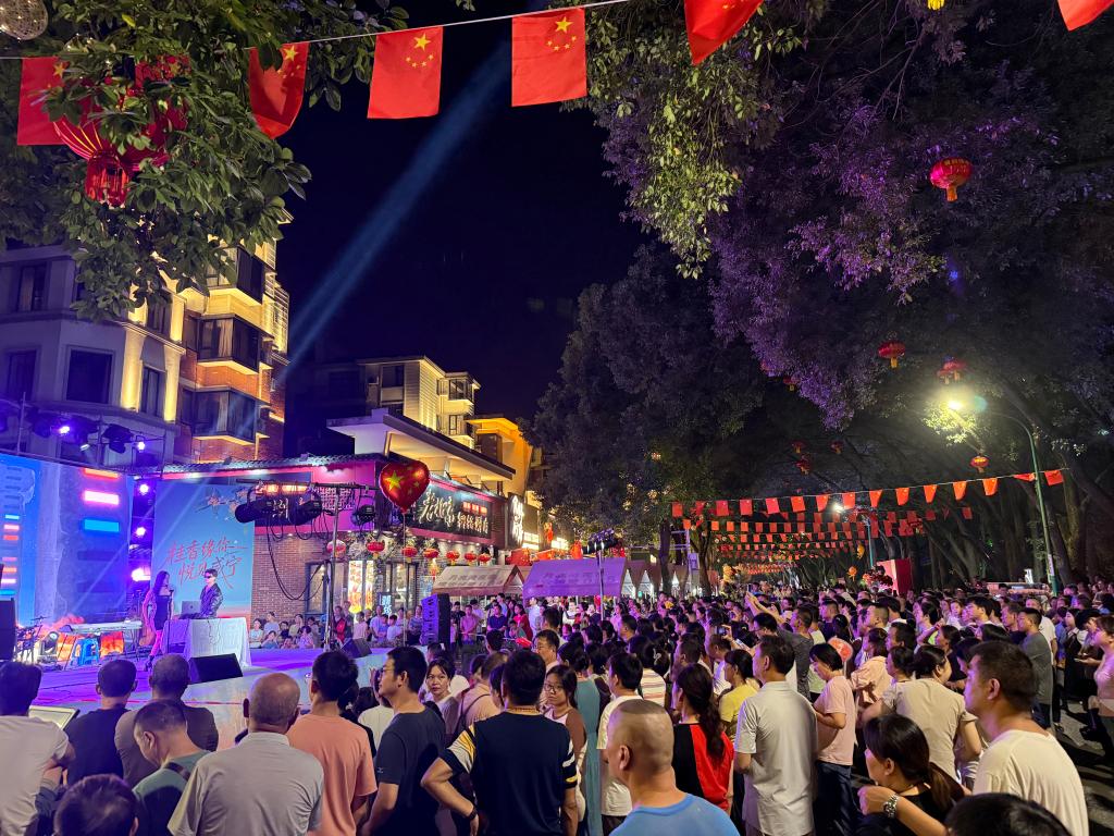 湖北咸宁月亮湾街区成为游客夜游热门打卡地。新华社发(魏张昕 摄)