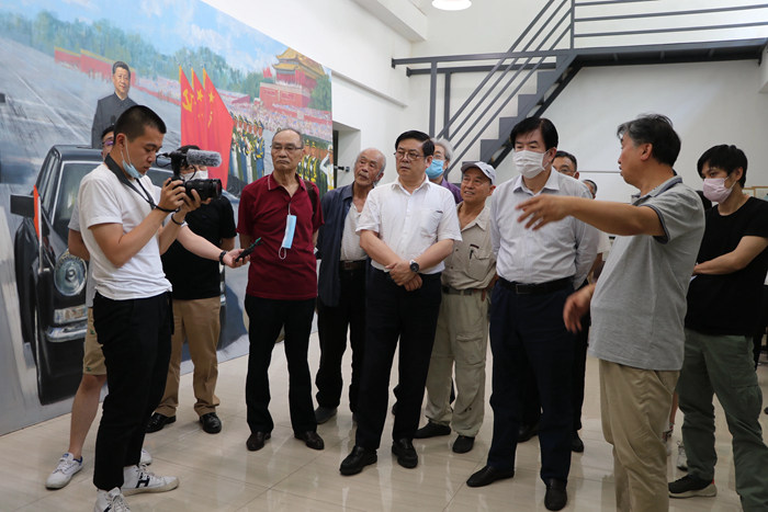2020年6月12日,李屹带领“不忘初心 继续前进——庆祝中国共产党成立100周年大型美术创作工程”专家组赴主创画家工作室观摩指导创作。