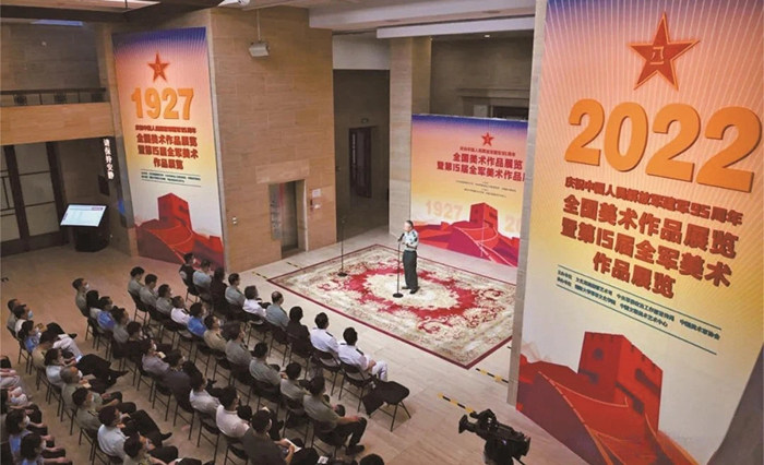 2022年8月1日,“庆祝中国人民解放军建军95周年全国美术作品展览暨第15届全军美术作品展览”在中国美术馆开幕。
