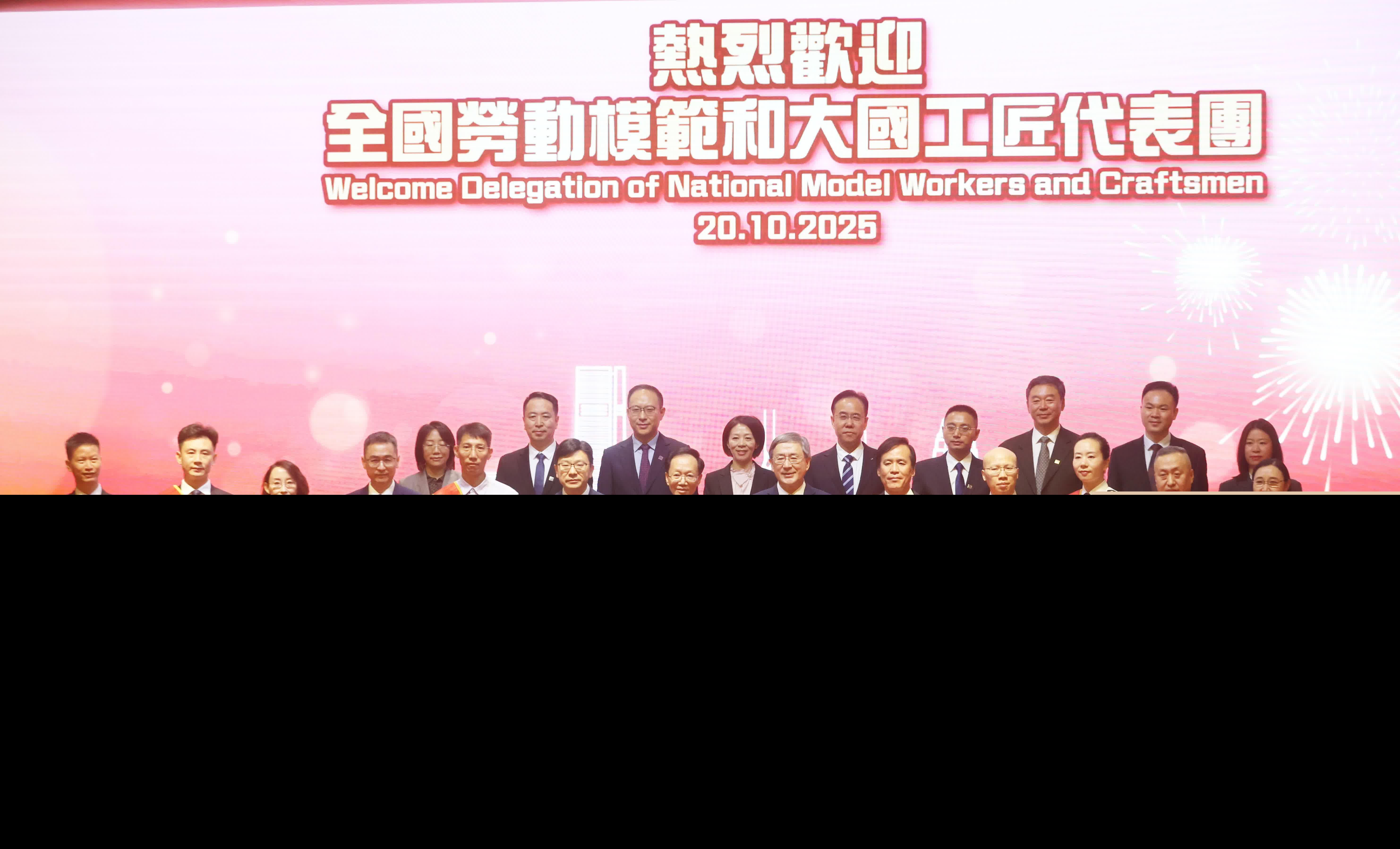 香港特區政府今日下午在灣仔香港君悅酒店為代表團舉行歡迎儀式。代表團由中華全國總工會副主席魏地春率領,成員包括7名來自不同領域的全國勞動模範和大國工匠。