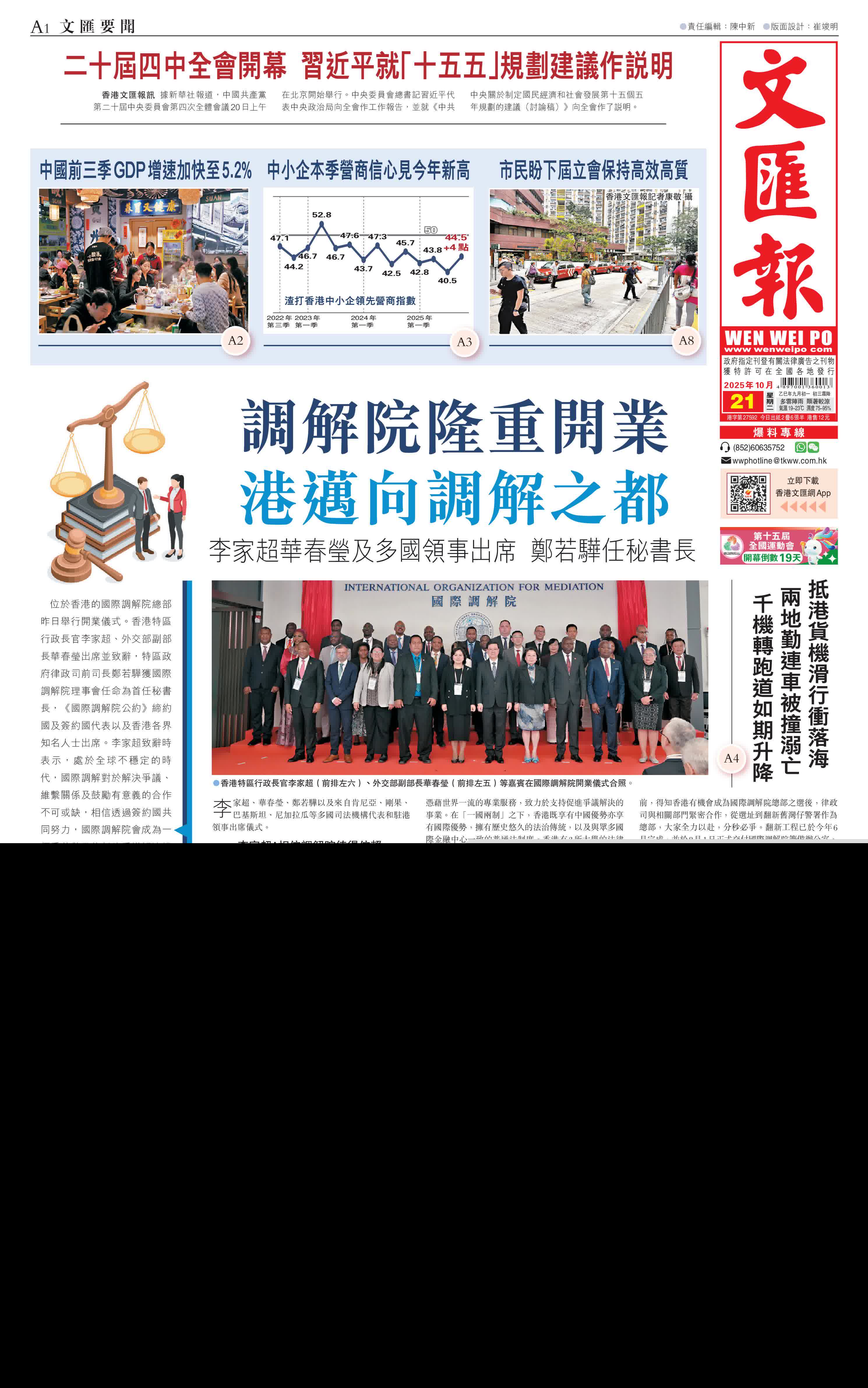 昨日下午,李家超在林定國陪同下,與華春瑩會面。李家超代表特區政府歡迎華春瑩來港,並表示很欣喜看見在中央政府的大力支持下,香港特區擔當如此重要的角色,讓首個及唯一一個專門以調解方式解決國際爭議的政府間國際組織正式落戶香港,與設於海牙、專門以其他方式解決爭議的聯合國國際法院和常設仲裁法院看齊。