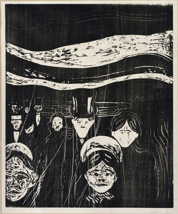 《焦虑》,蒙克,木刻版画,1896,柏林国家博物馆之版画素描博物馆藏品