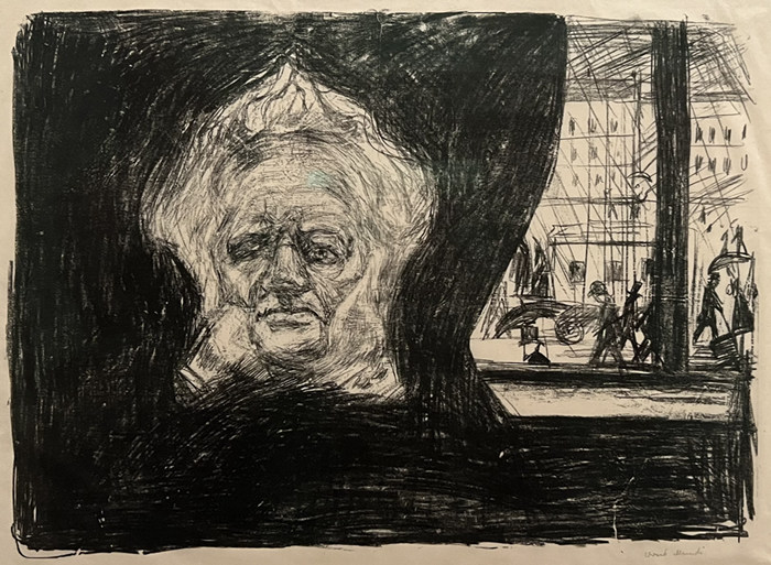 《易卜生在格兰咖啡馆》,蒙克,石版画,1902,柏林国家博物馆之版画素描博物馆藏品