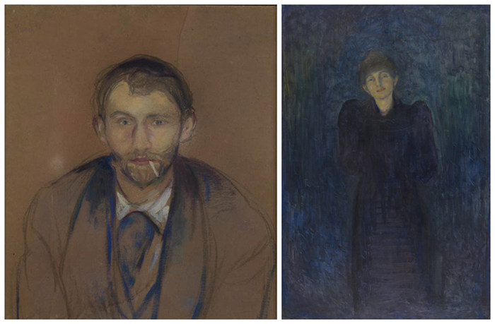 蒙克,挪威蒙克美术馆藏品,左图:《斯坦尼斯瓦夫·普日贝舍夫斯基肖像》(1868-1927),1895;右图:《达格妮·尤尔肖像》(1867-1901),1893