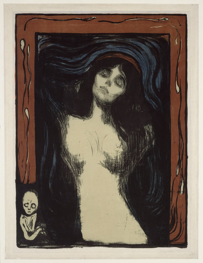 《圣母玛利亚》,蒙克,1895/1902,彩色石版画&彩色木刻版画