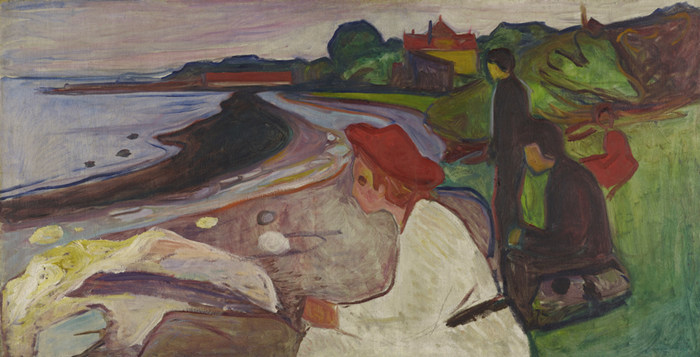 “林德饰带”之《海滩上的年轻人》,蒙克,1904,蒙克美术馆藏品