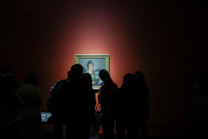 观众观看《捧果篮的男孩》,浦东美术馆,2023