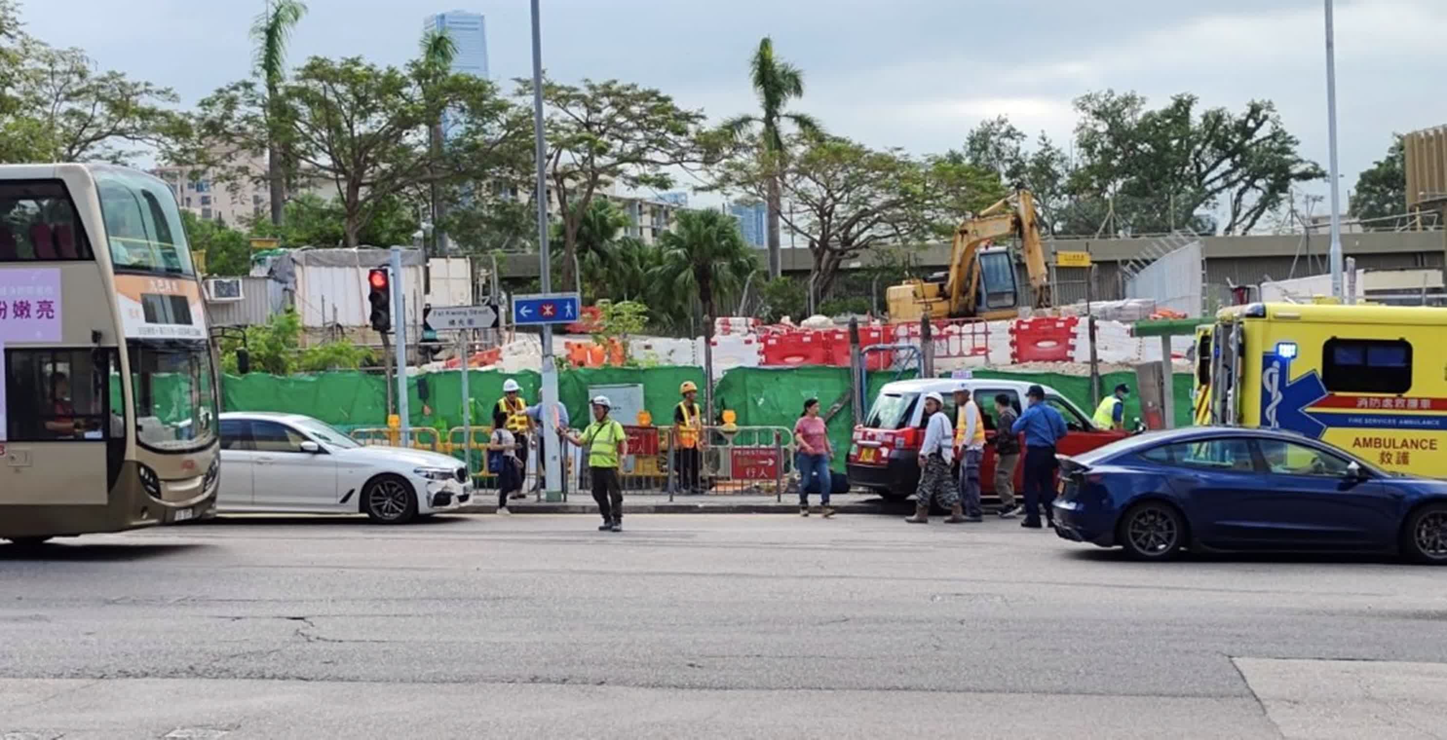 香港文匯報訊(記者 蕭景源)下午近3時許,一輛的士駛至何文田佛光街近常樂街一地盤外,突遭一輛白色私家車撞中,頓時失控衝上行人路撞傷兩名男女地盤工人,當中男傷者頭部受傷一度昏迷、女傷者則告背痛;的士上亦有一名女乘客報稱胸口及背痛。事後3名傷者被送往伊利沙伯醫院救治。