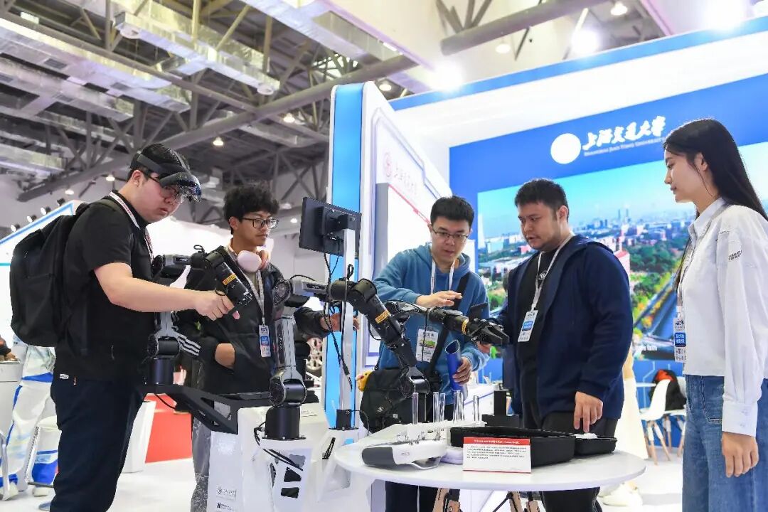 观众在第63届高等教育博览会上了解机械臂。新华社记者 张楠摄