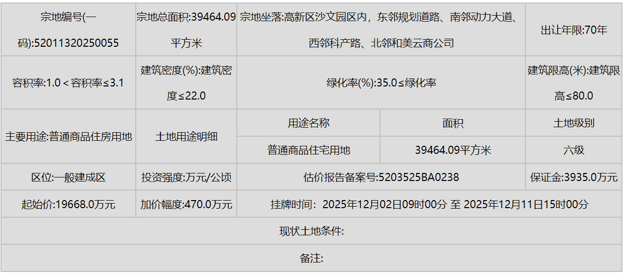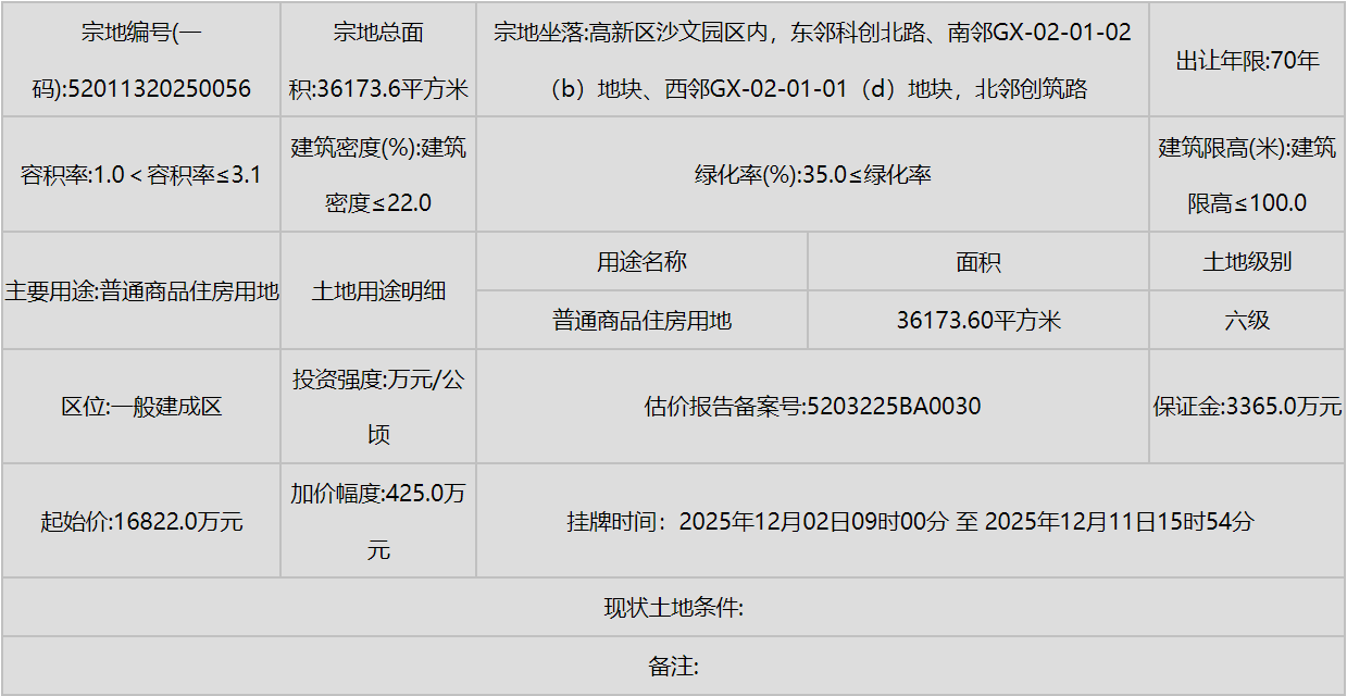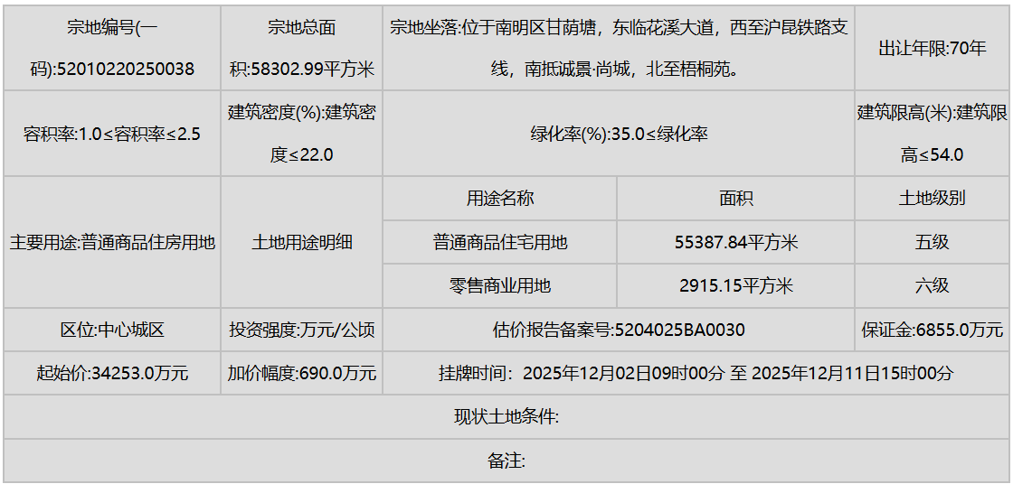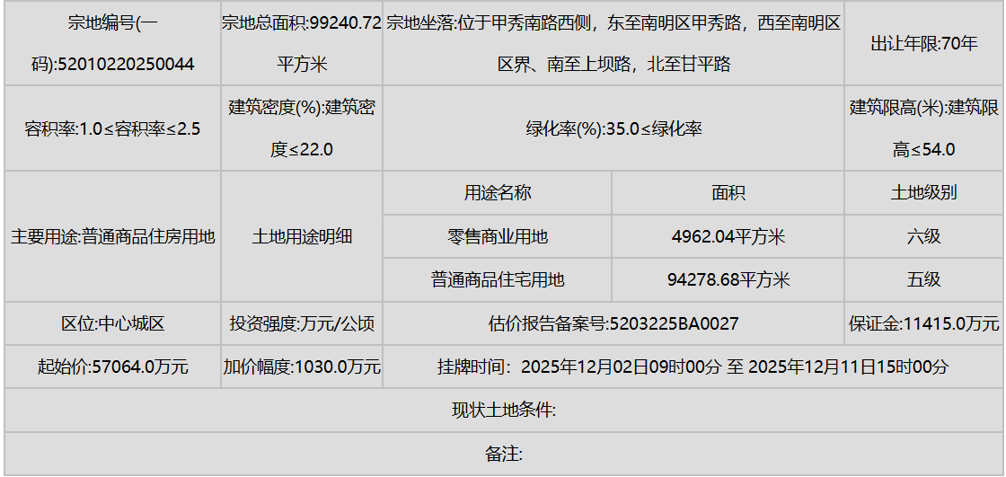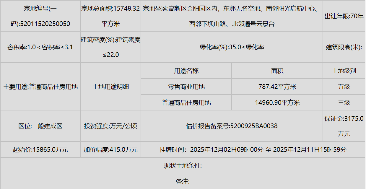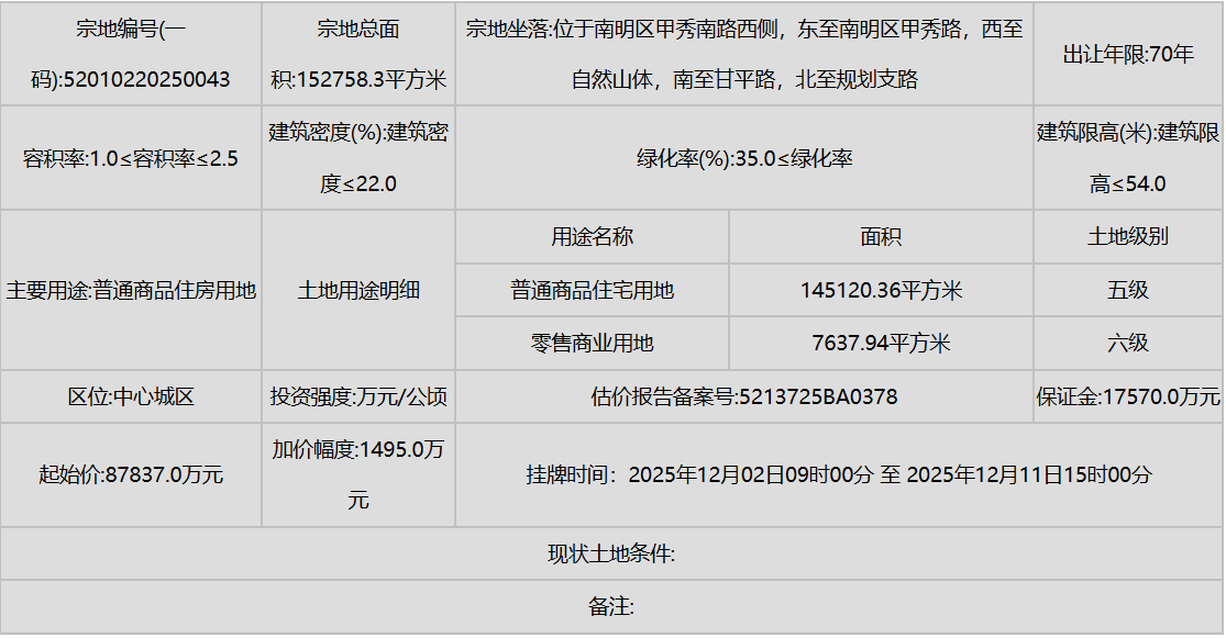 同时,南明区(甲秀南路沿线、甘荫塘片区)和云岩区(三马片区、黔灵镇)等中心城区也有优质地块入市,显示了城市更新和内涵式发展的持续动力。