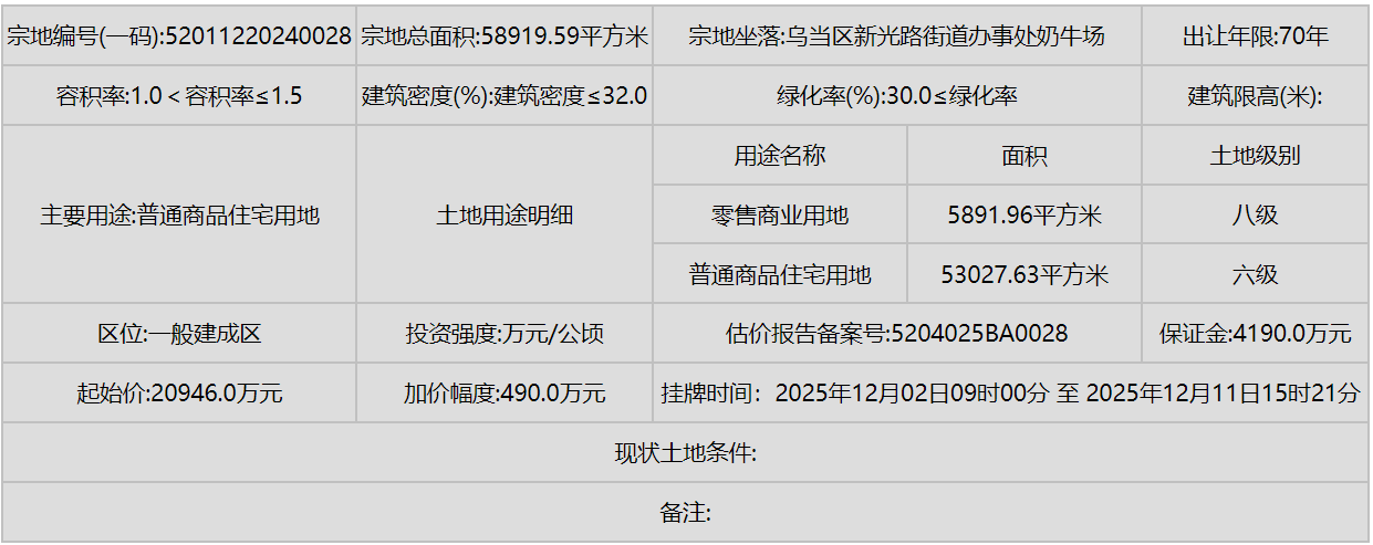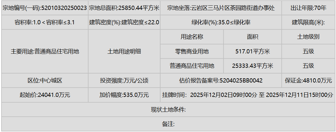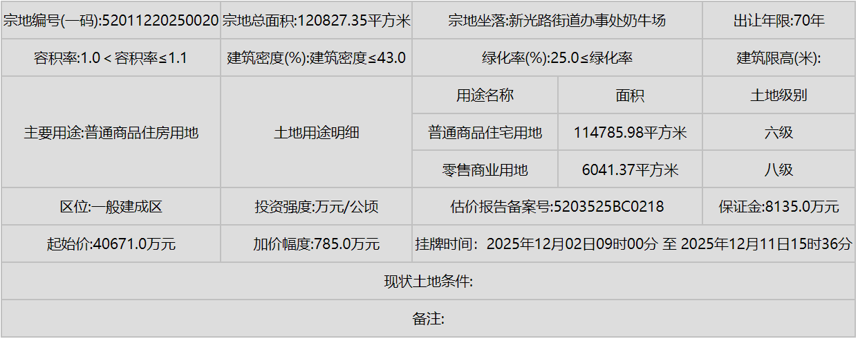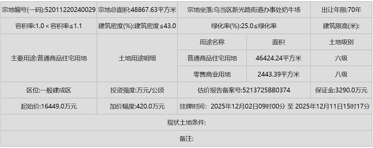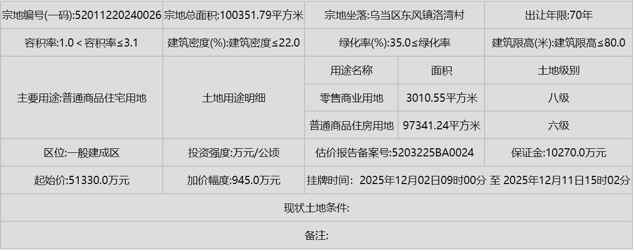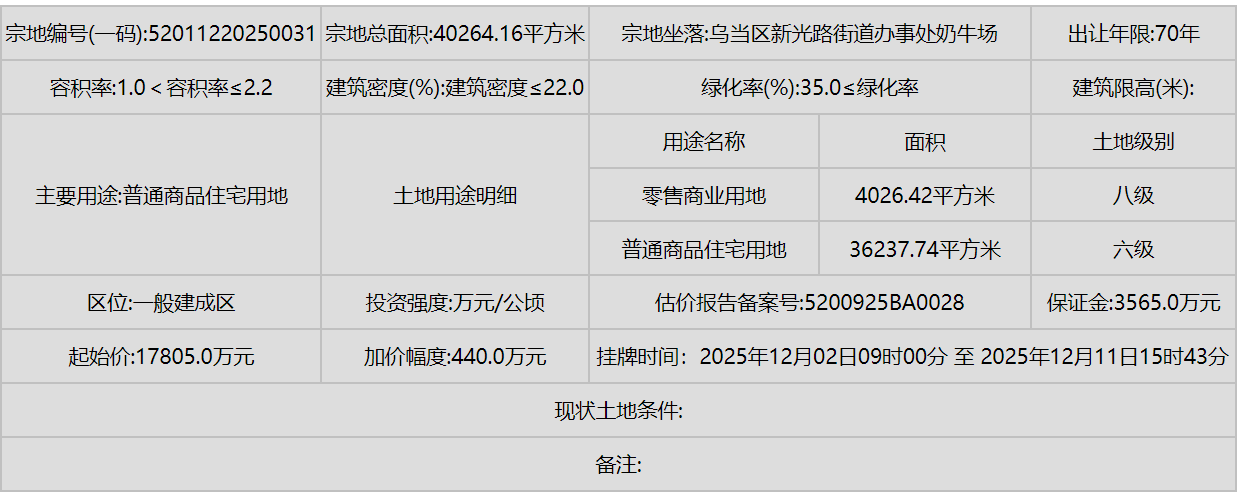 同时,南明区(甲秀南路沿线、甘荫塘片区)和云岩区(三马片区、黔灵镇)等中心城区也有优质地块入市,显示了城市更新和内涵式发展的持续动力。