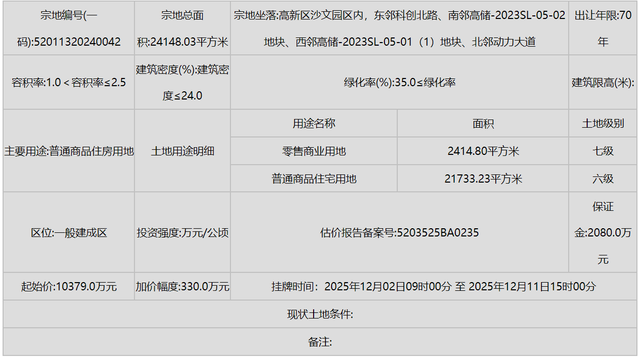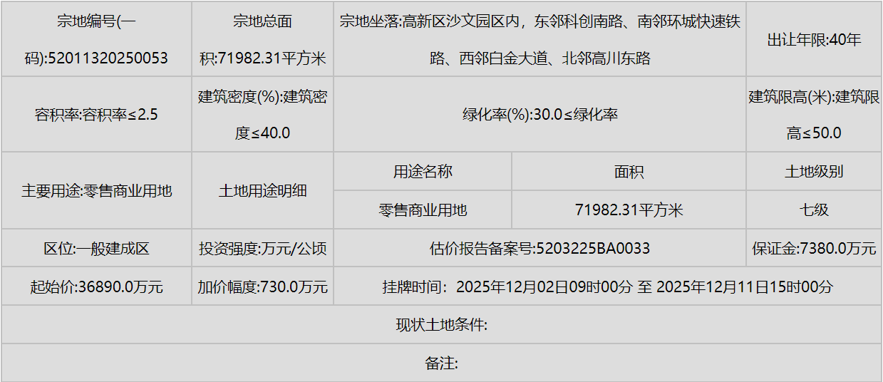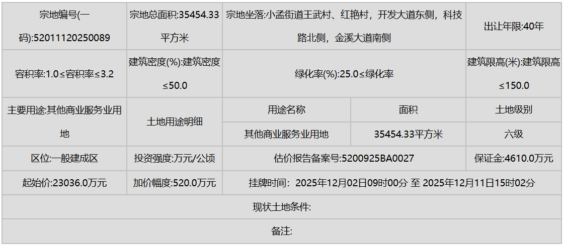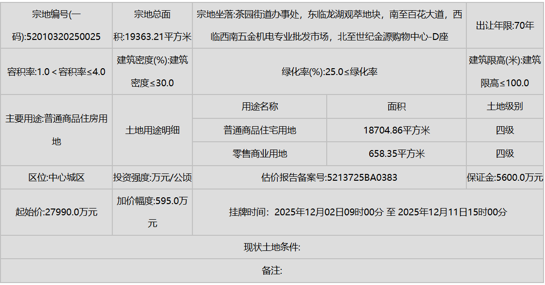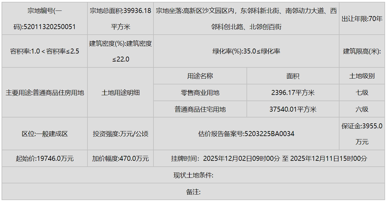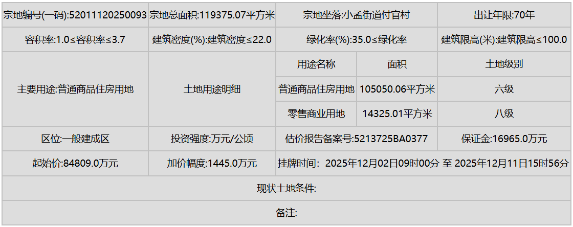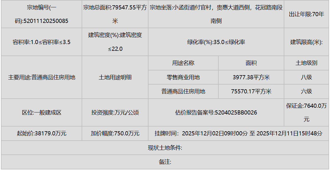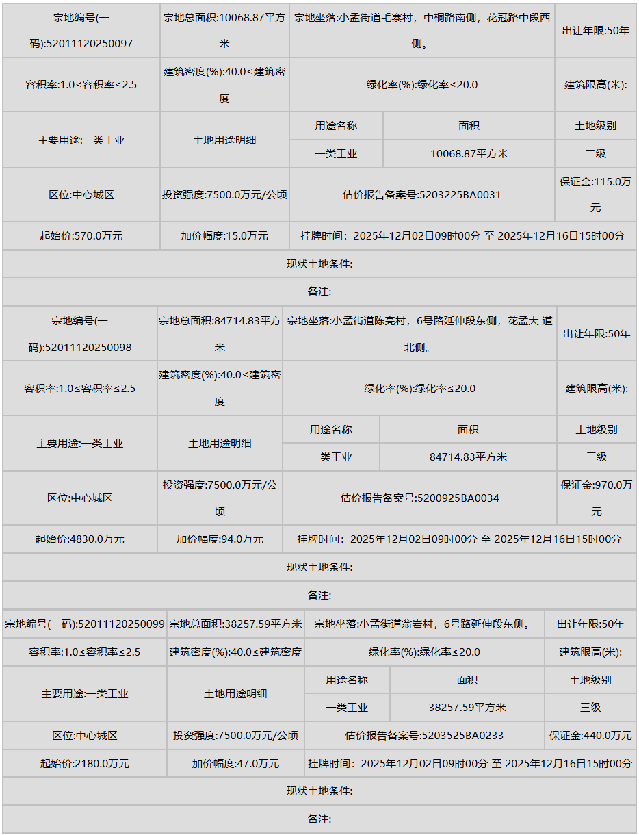 花溪区(小孟街道)则有多宗工业和商业用地挂牌,进一步强化了产业的区域集聚。