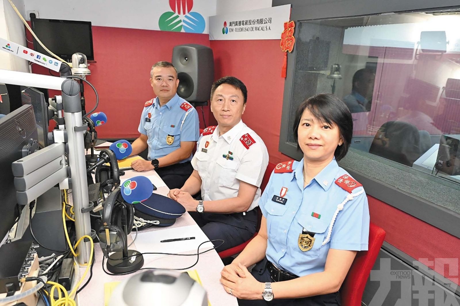 警察總局局長助理魏瑞斌、海關助理關長葉華釗、治安警察局副局長伍素萍應邀出席澳門電台時事節目與聽眾交流。(保安司司長辦公室圖片)