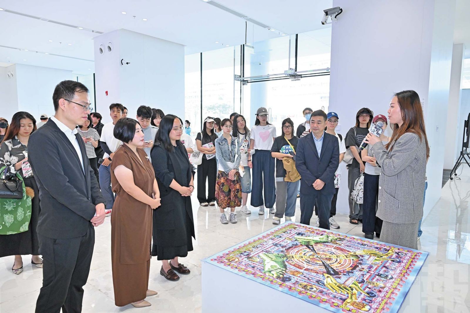 剪綵儀式後,由策展人常嬋帶領嘉賓參觀展覽。本次展覽為「藝文薈澳:澳門國際藝術雙年展2025」平行展之一,此前曾在澳門展出,此次移師橫琴,體現了琴澳「一展兩地」政策的落實與文化合作的深化。