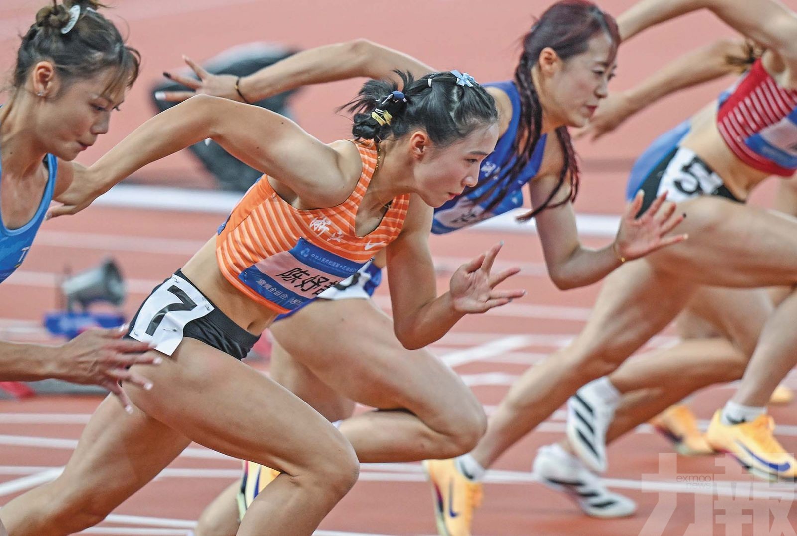 浙江隊選手陳妤頡在比賽中起跑。(新華社圖片)