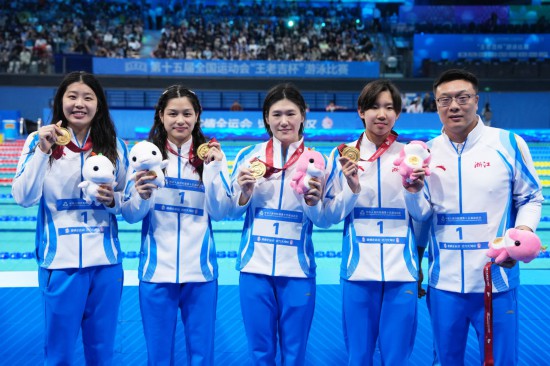 17日,十五运会游泳进入最后一个比赛日,山东队18岁小将张展硕在男子1500米自由泳中夺冠,拿到他在本届全运会的第五枚金牌;浙江队31岁老将汪顺续写传奇,在男子400米个人混合泳夺冠后,个人全运会金牌总数达到19枚。