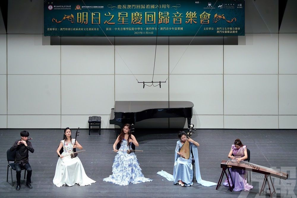 為慶祝澳門回歸祖國26周年,由中央音樂學院澳門校友會、澳門中葡青年文化體育交流協會聯合主辦,澳門特區政府文化局、澳門文化界聯合總會支持,澳門特區政府文化發展基金資助,澳門文化中心提供場租優惠的“明日之星慶回歸音樂會”,16日晚在澳門文化中心小劇院隆重上演。中央音樂學院附中的優秀學生與澳門本地音樂新秀、澳門青少年弦樂團攜手獻藝,為現場觀眾帶來一場中西合璧的藝術盛宴。